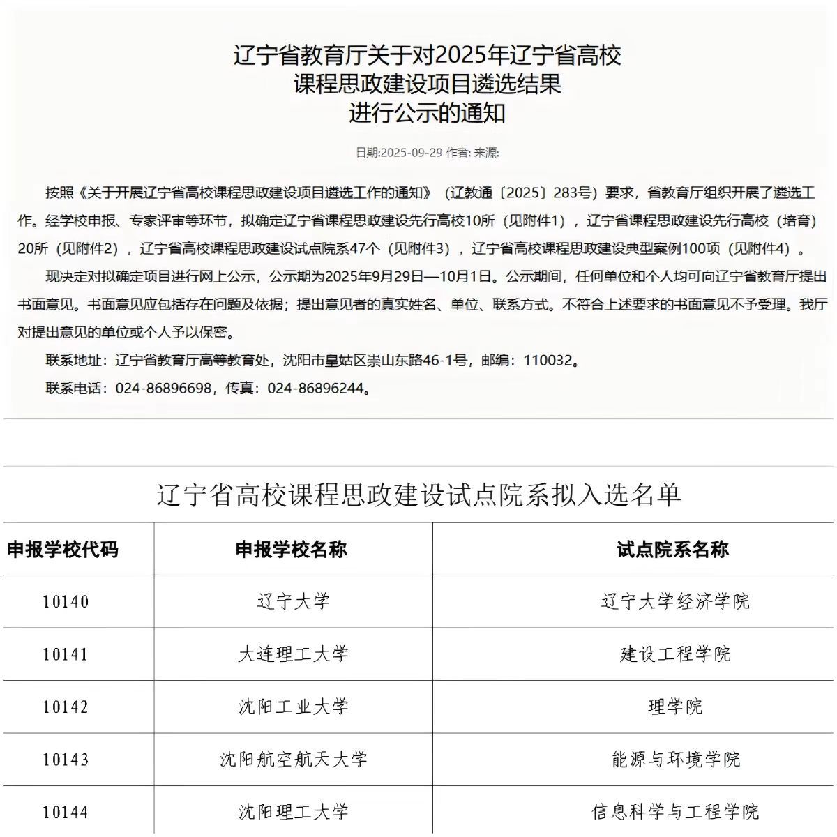 近日,辽宁省教育厅公布2025年省级课程思政建设项目名单,沈阳工业大学理学院凭借特色鲜明的...