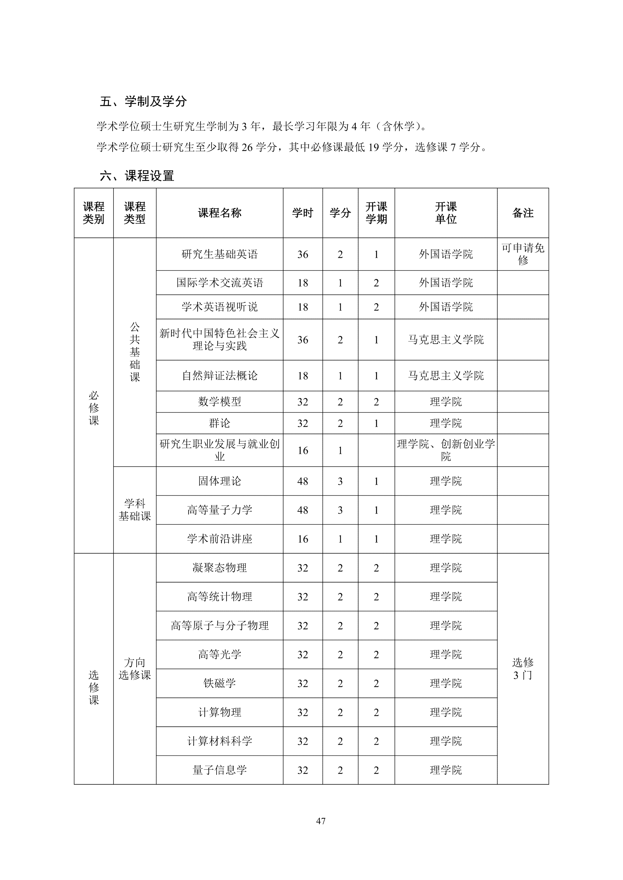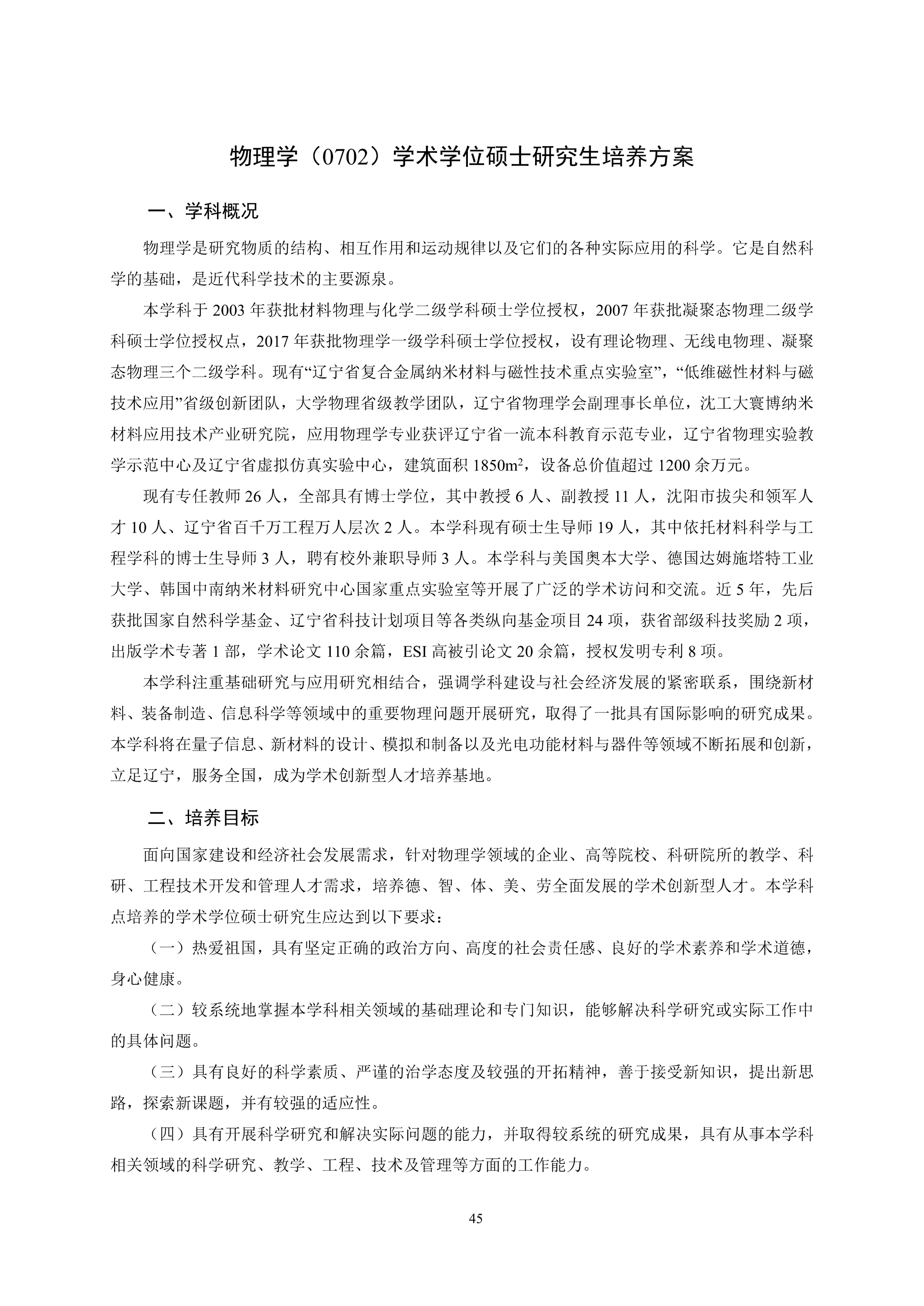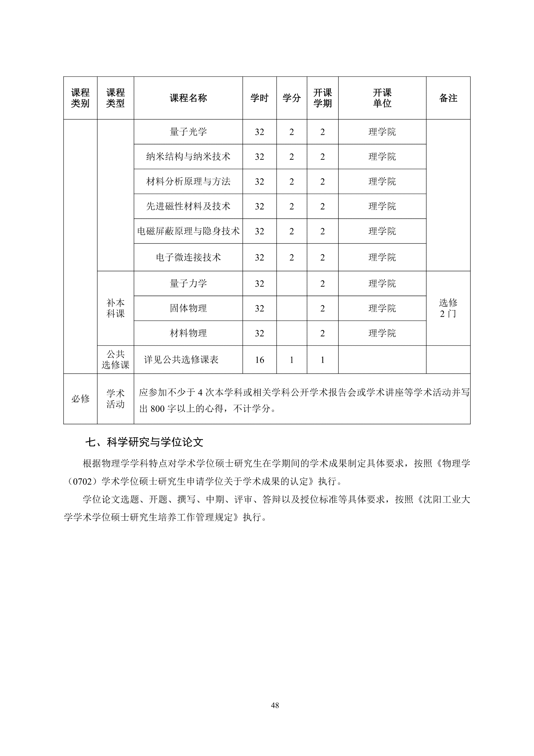 物理学(0702)学术学位硕士研究生培养方案